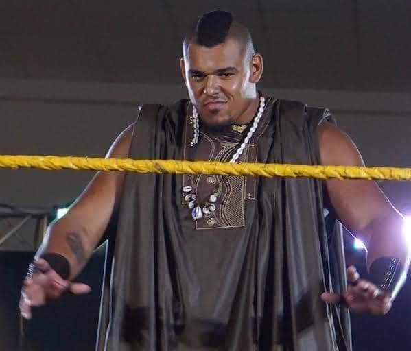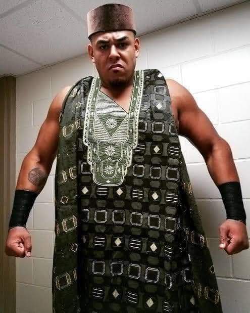 He wears agbada to the ring, lol. He used to play American football before switching for the WWE.