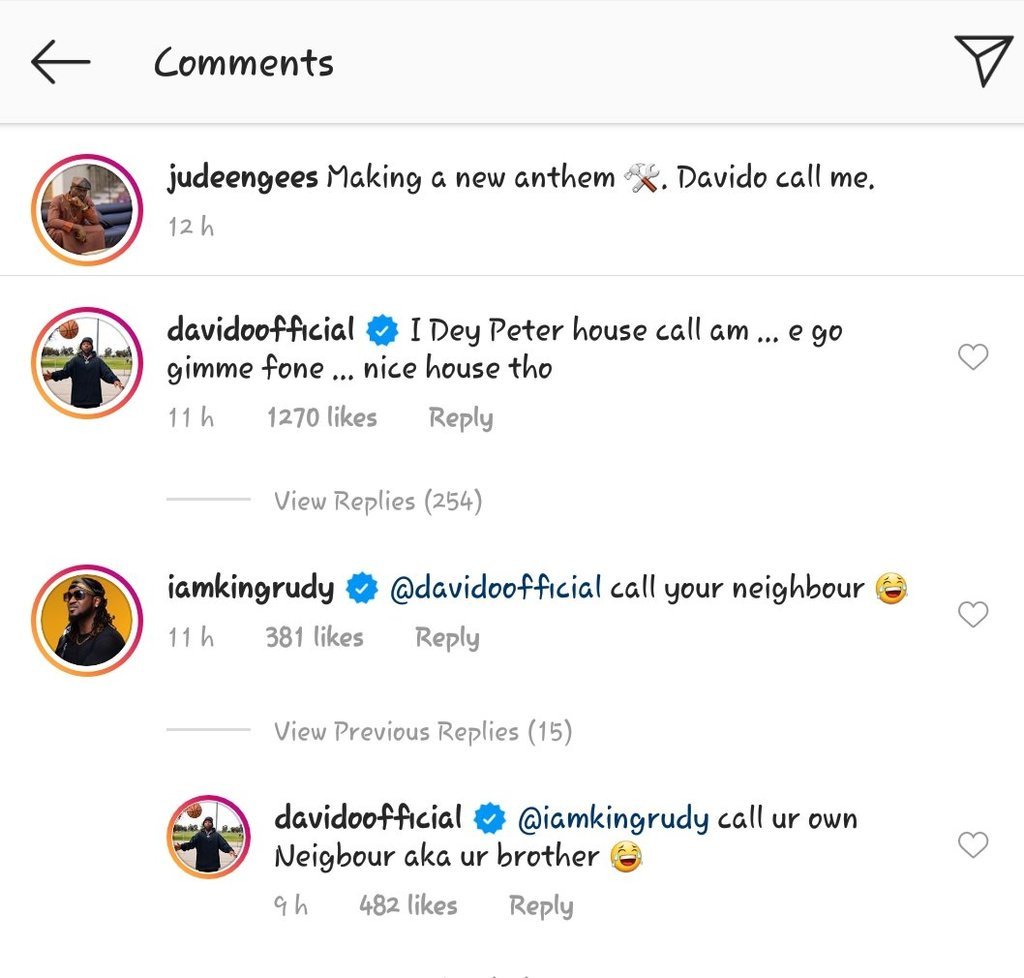 Davido - @iamkingruddy call your own neighbour aka ur brother 😂