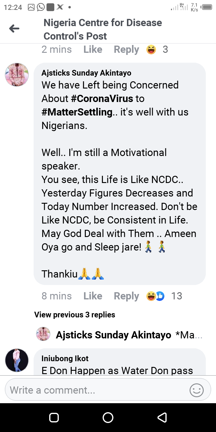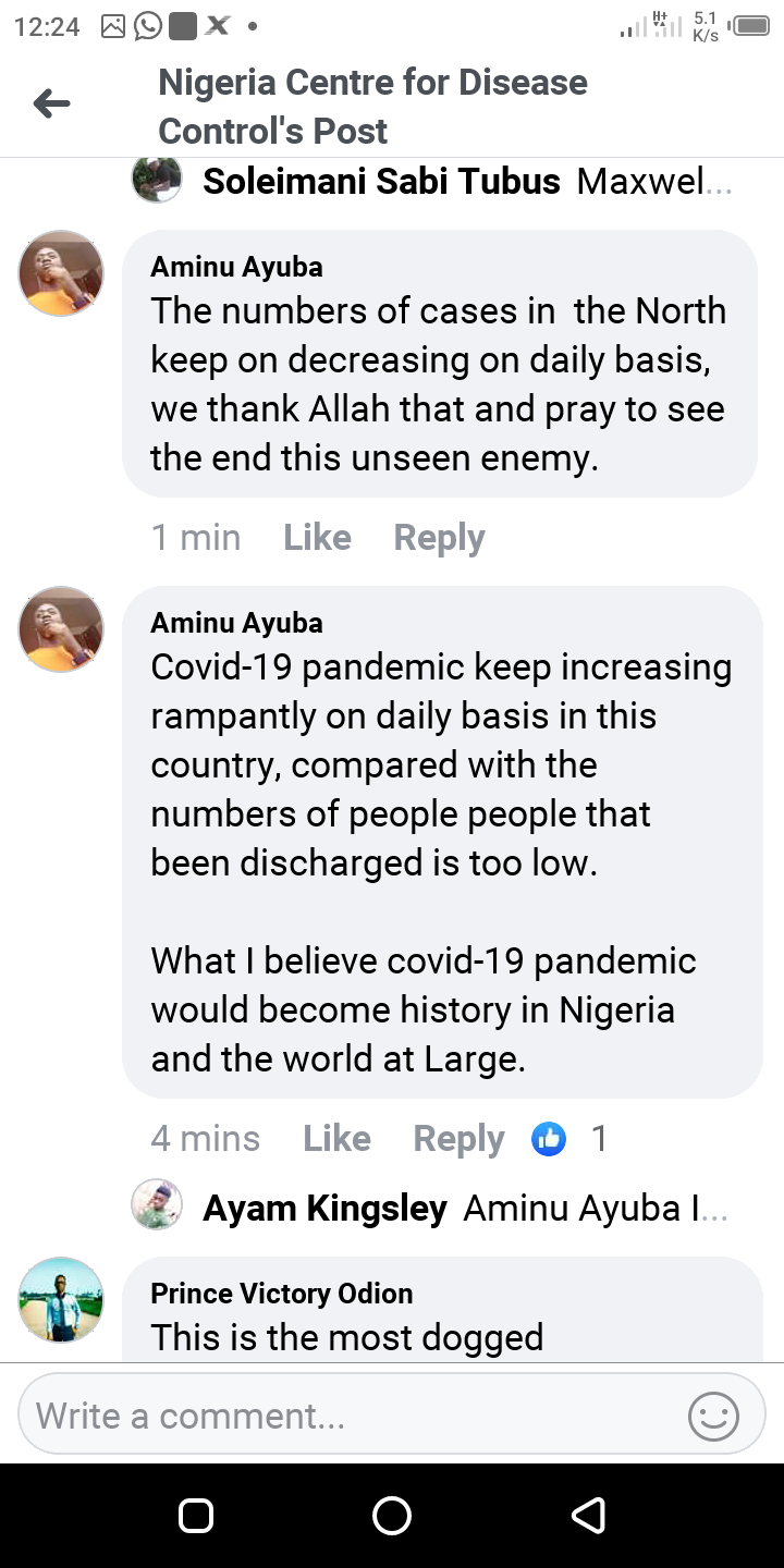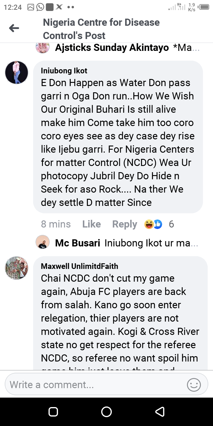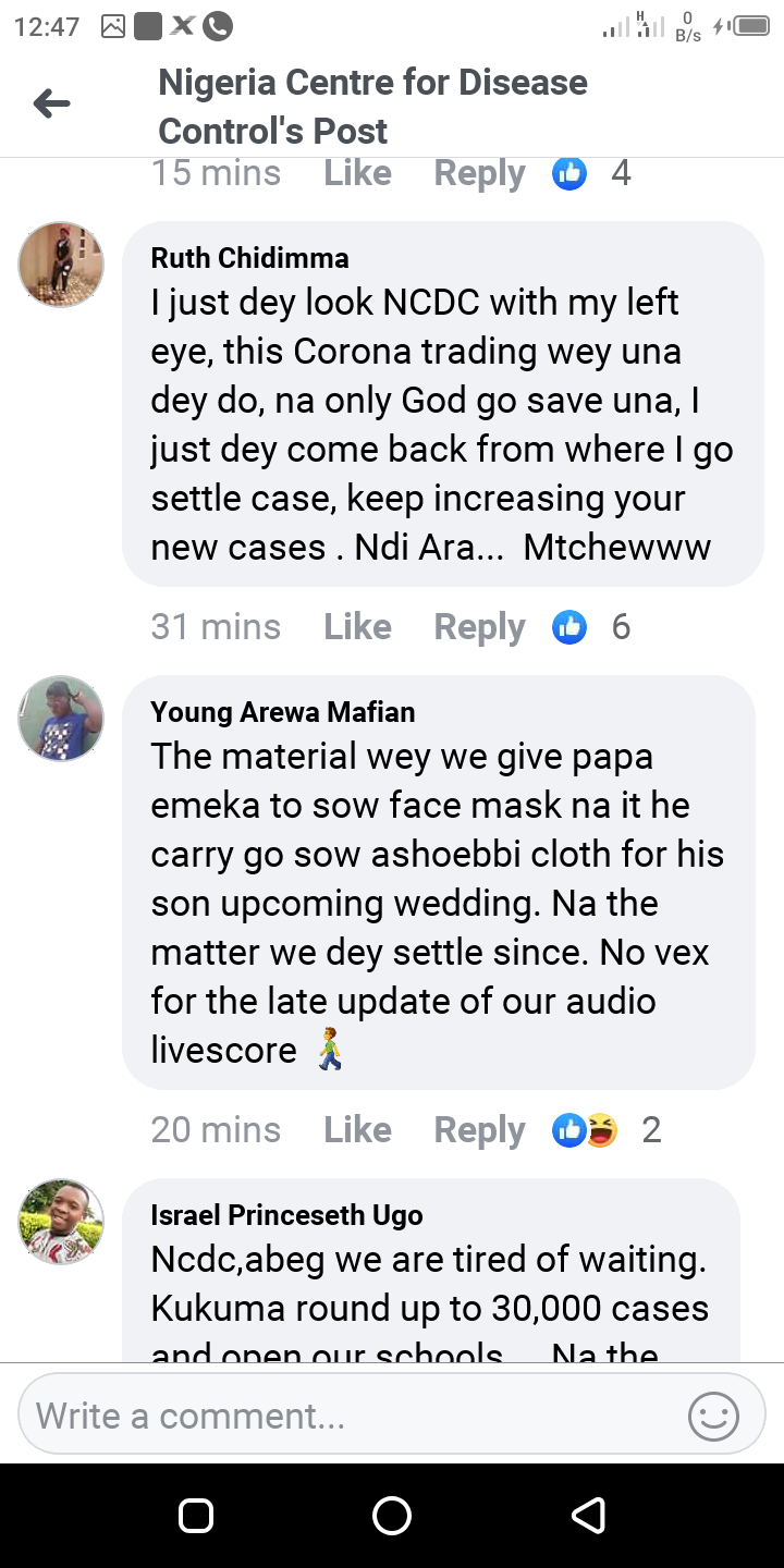 The following are the screenshots from the Facebook comment's session under the NCDC update for number of new cases for the 30/5/2020