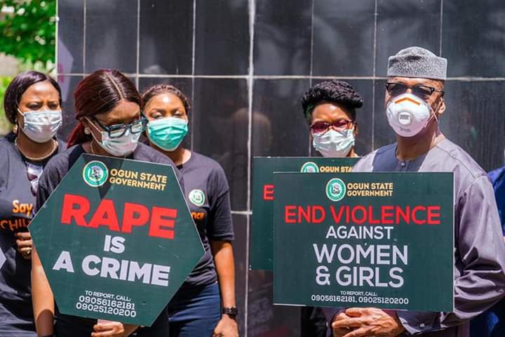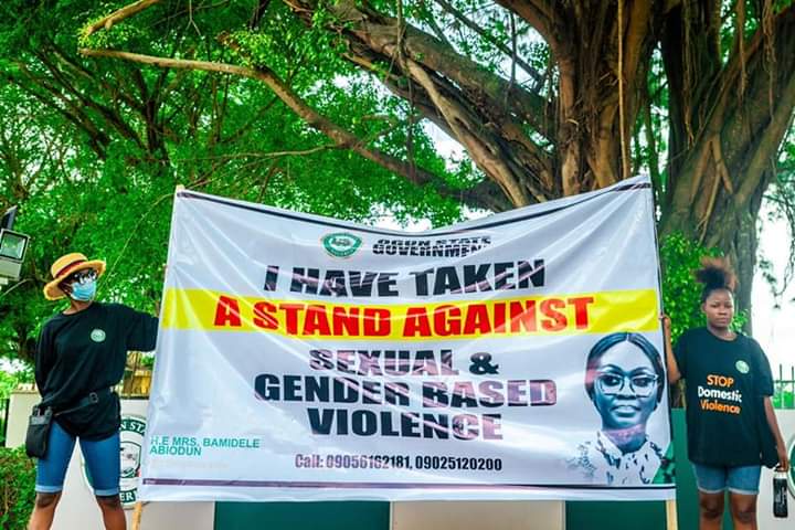- The First Lady of Ogun State, Mrs. Bamidele Abiodun called on the three arms of government, in Ogun state to give unflinching support to matters concerning rape and gender based violence, during a peaceful walk and awareness to the Executive and the Legislative arms of the State, to solicit support, for action against gender based violence and rape in Ogun State.
