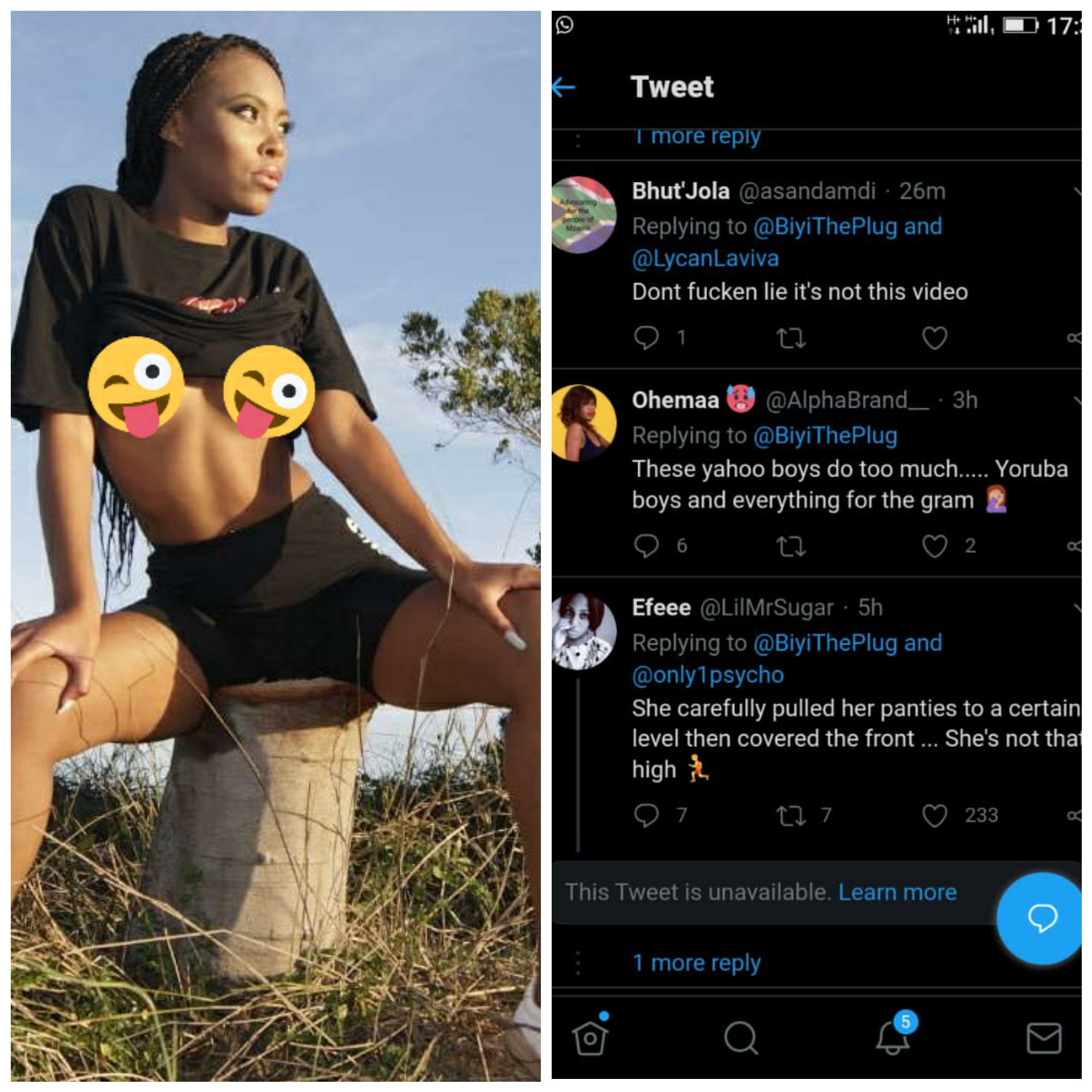 Moments later the young lady posed pictures of herself on her Facebook page apparently enjoying life, with her followers complaining that "we are busy fighting for you on Twitter, while you are here enjoying life"